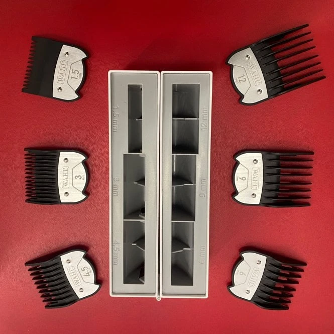 Wahl 6 Premium Magnetic Attachment Combs offering length 1.5mm, 3mm, 4.5mm, 6mm, 9mm & 12mm.